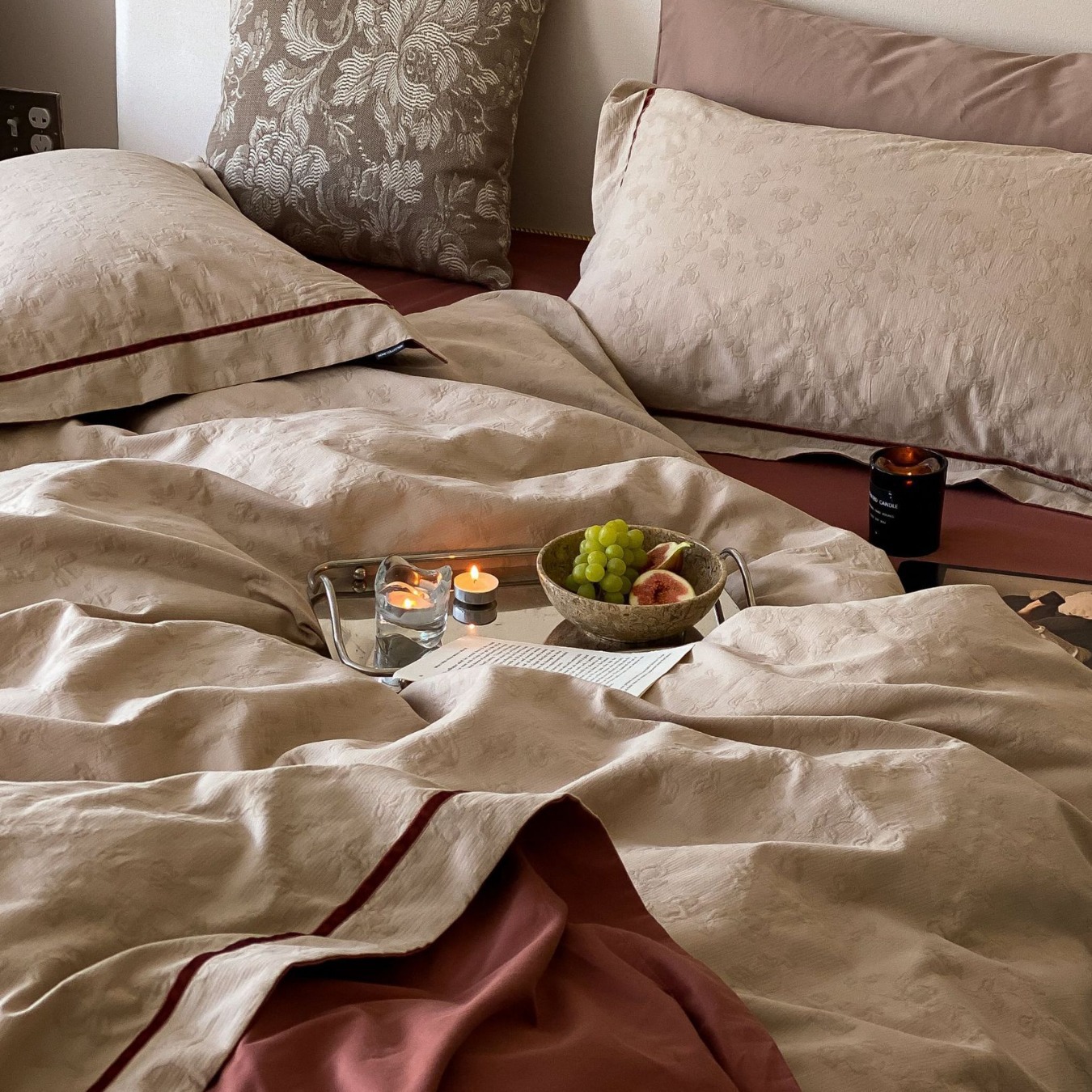 ミルク茶色の綿100s全工芸オーストラリア綿のデジタルプリントが色を合わせてベッドのカバーをしています。