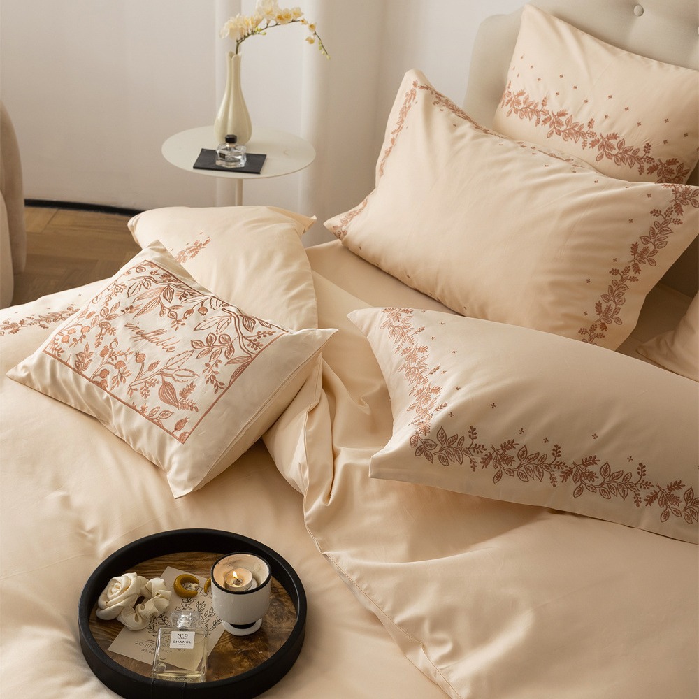ヨーロッパ式古典簡易金100綿刺繍柔らかい肌水洗い綿家庭用寝室ベッド笠四点セット