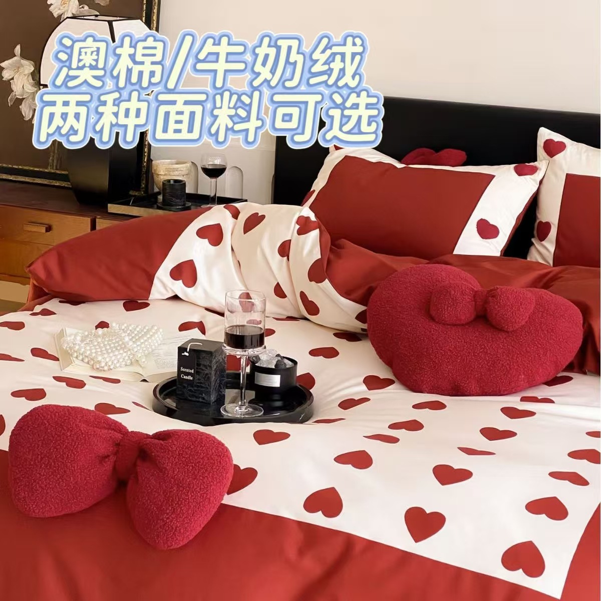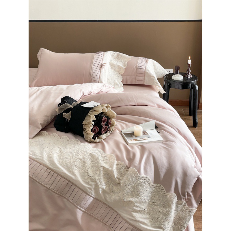 A級フレンチレース長繊維綿4点セット、手作りベルベットリボンレース掛け布団カバー、純綿ベッドシーツ