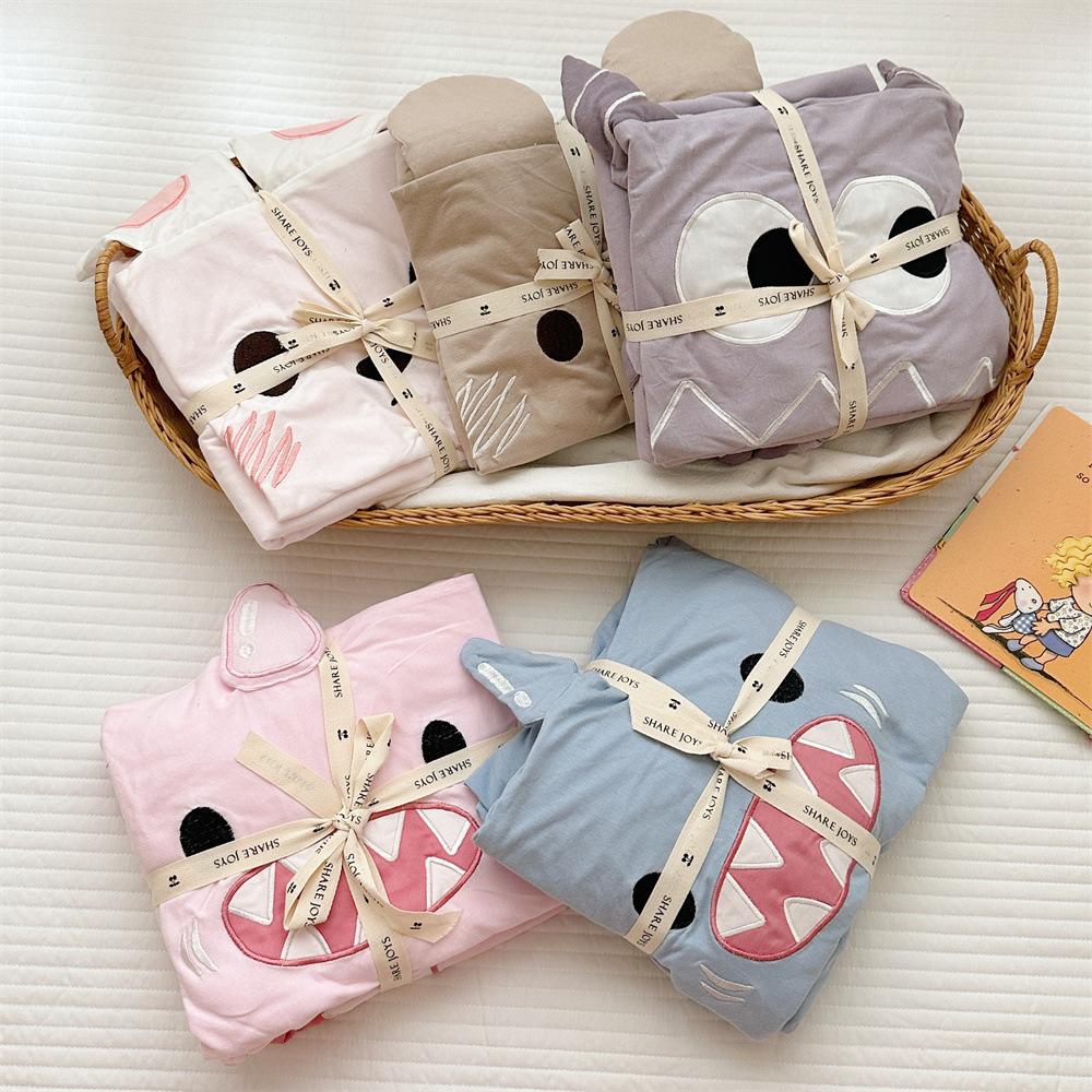 かわいい子供寮洗える掛け布団カバー3点セットニット刺繍掛け布団カバー枕カバー3点セット