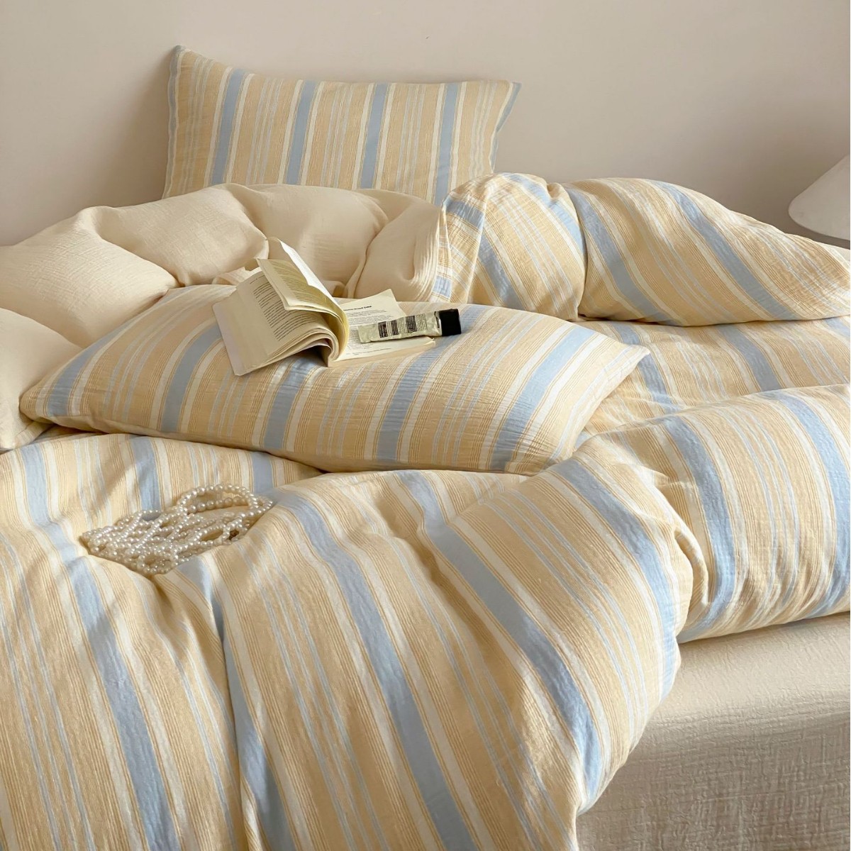 クラスA 先染めストライプ二重糸綿4点セット シンプル 小さめ フレッシュガール 純綿掛け布団カバー 寝具