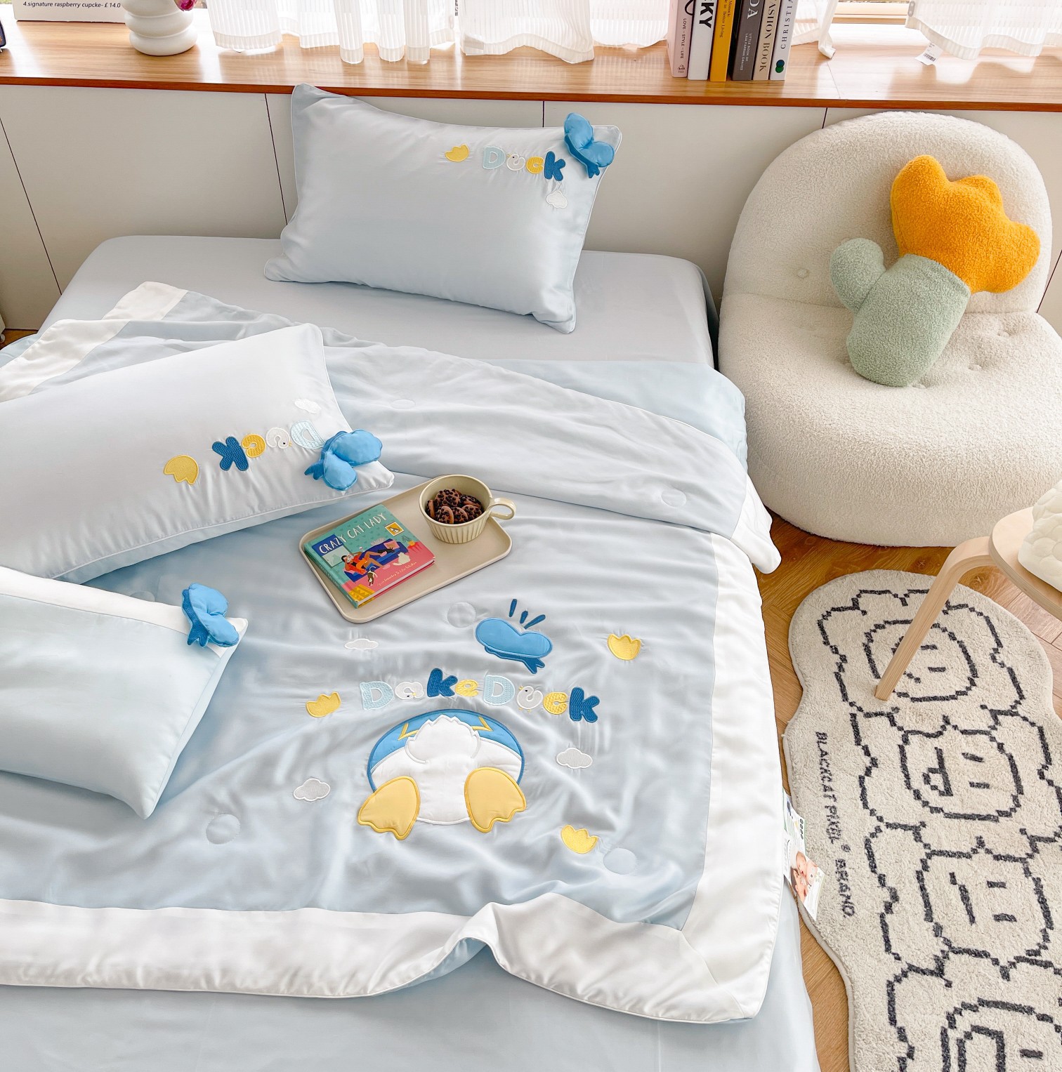 子供の漫画デジタルプリント刺繍二層糸サマーキルト 4 ピース寝具セット洗える通気性吸汗性