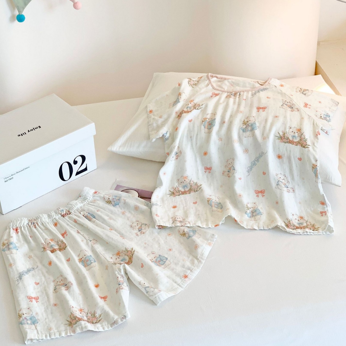 漫画の女性の竹繊維半袖ショーツ長袖ズボンスーツホームウェアカジュアル通気性春と夏に着用可能