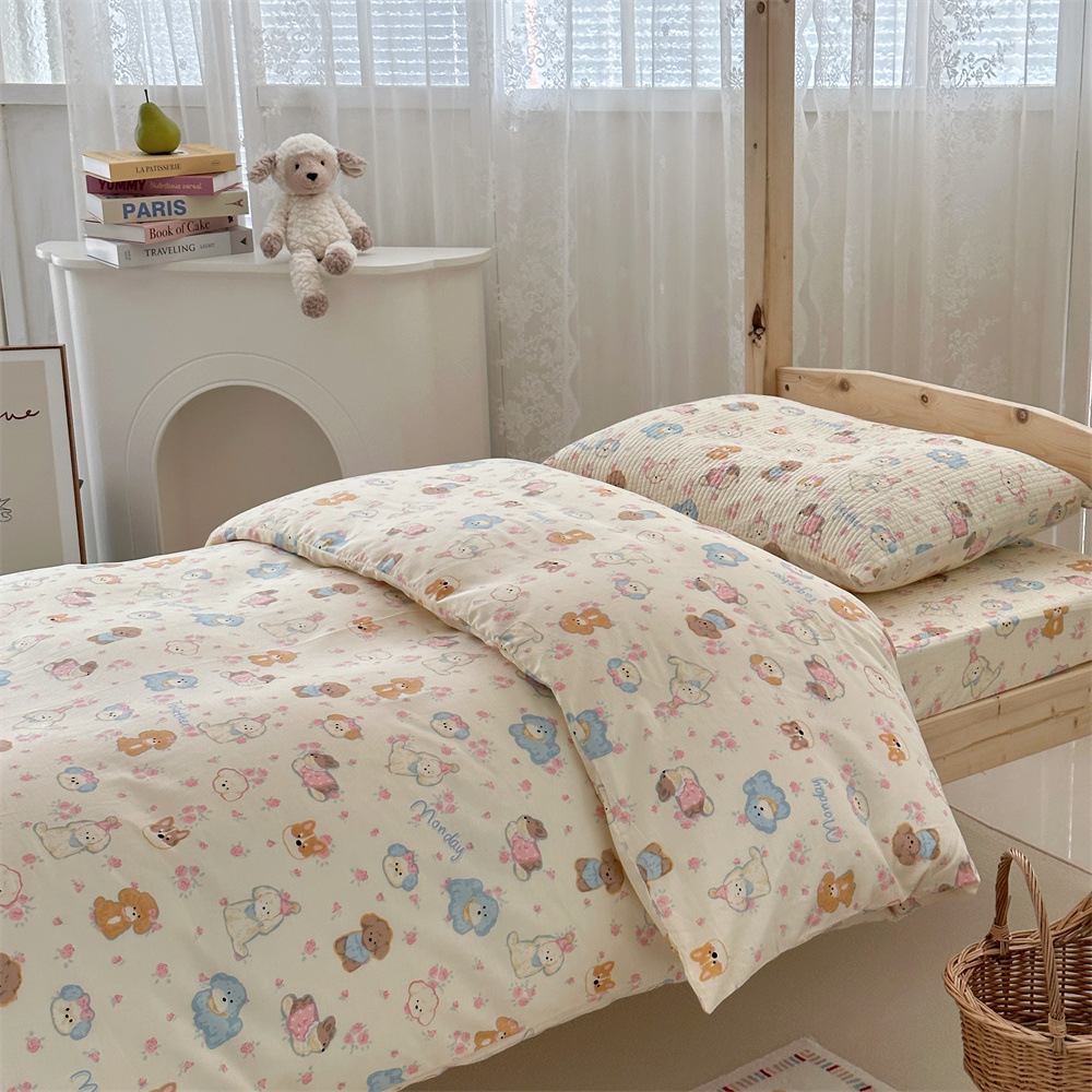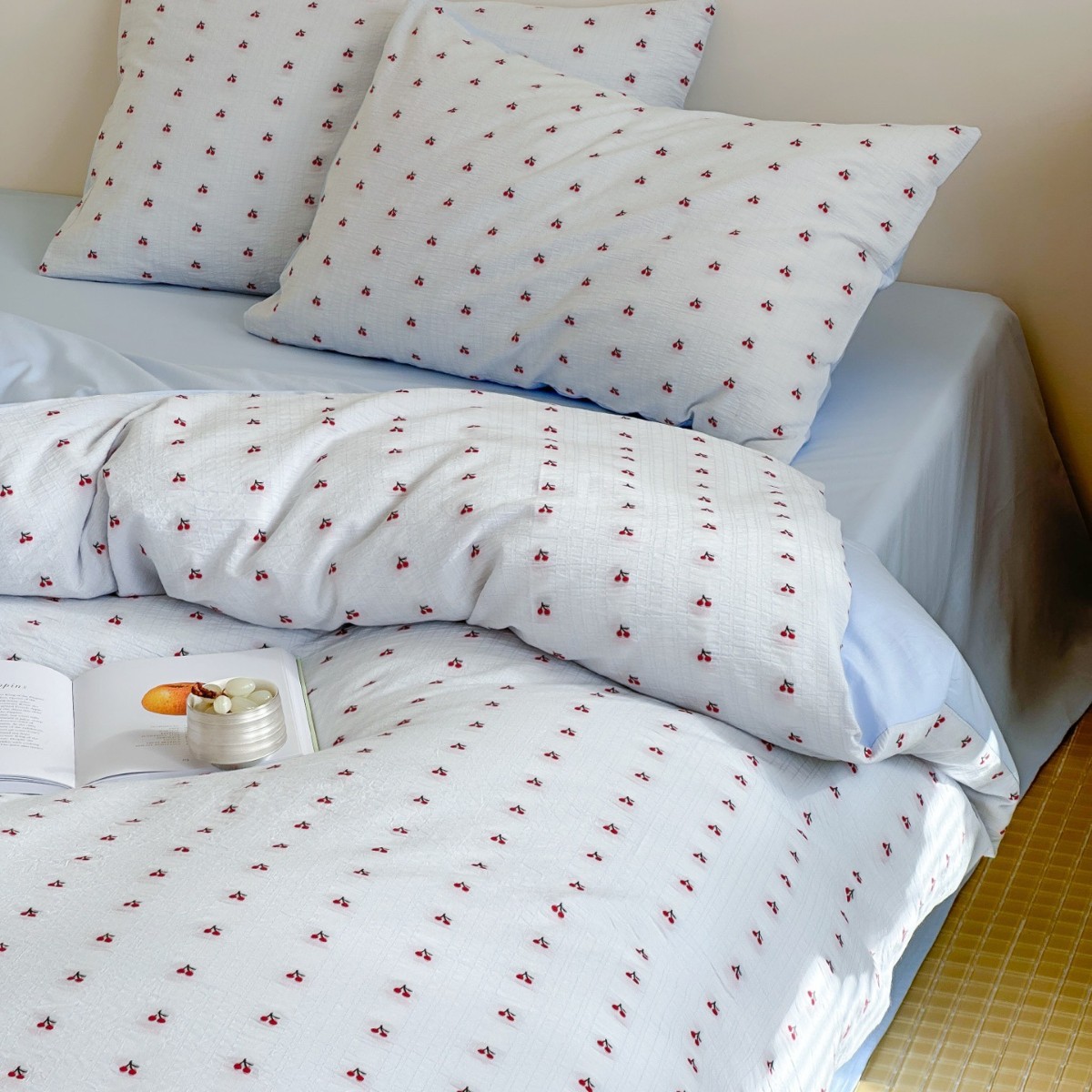 インス風フレッシュガールコットンウォッシュドコットンチェリージャガード4点セット肌に優しい掛け布団カバー四季寝具