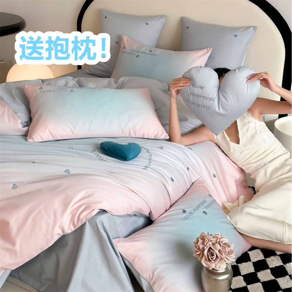 グラデーション捺染長絨毛綿結婚祝いの4点セットロマンチックな愛刺繍布団シーツ四季ベッド用品