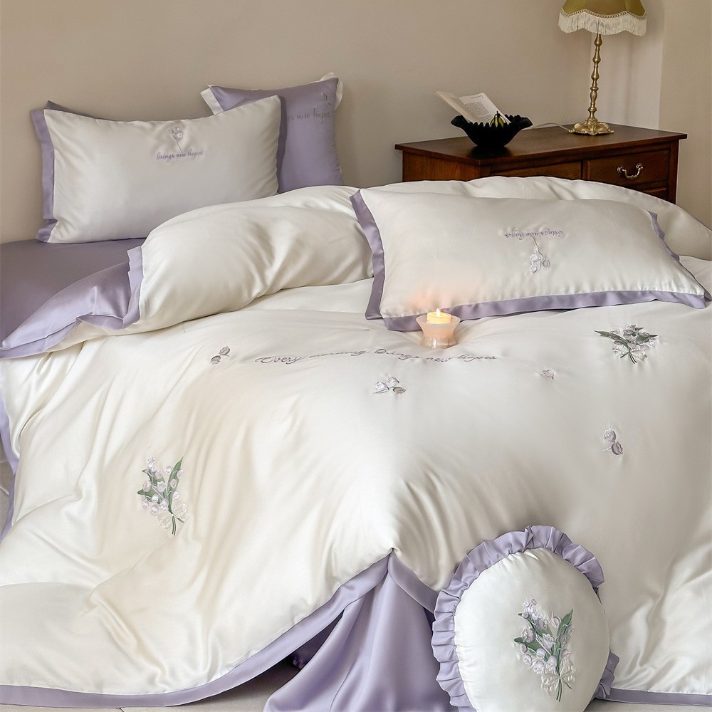 ライトラグジュアリーシンプルオーストリア60カウントレンチングテンセル4点セットデジタルプリント刺繍春夏寝具