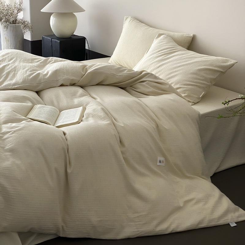 クラスA シンプルウォッシュコットンとリネンの質感ジャガード4点セット 無地掛け布団カバーとベッドシーツ 1.8m 肌に優しい寝具
