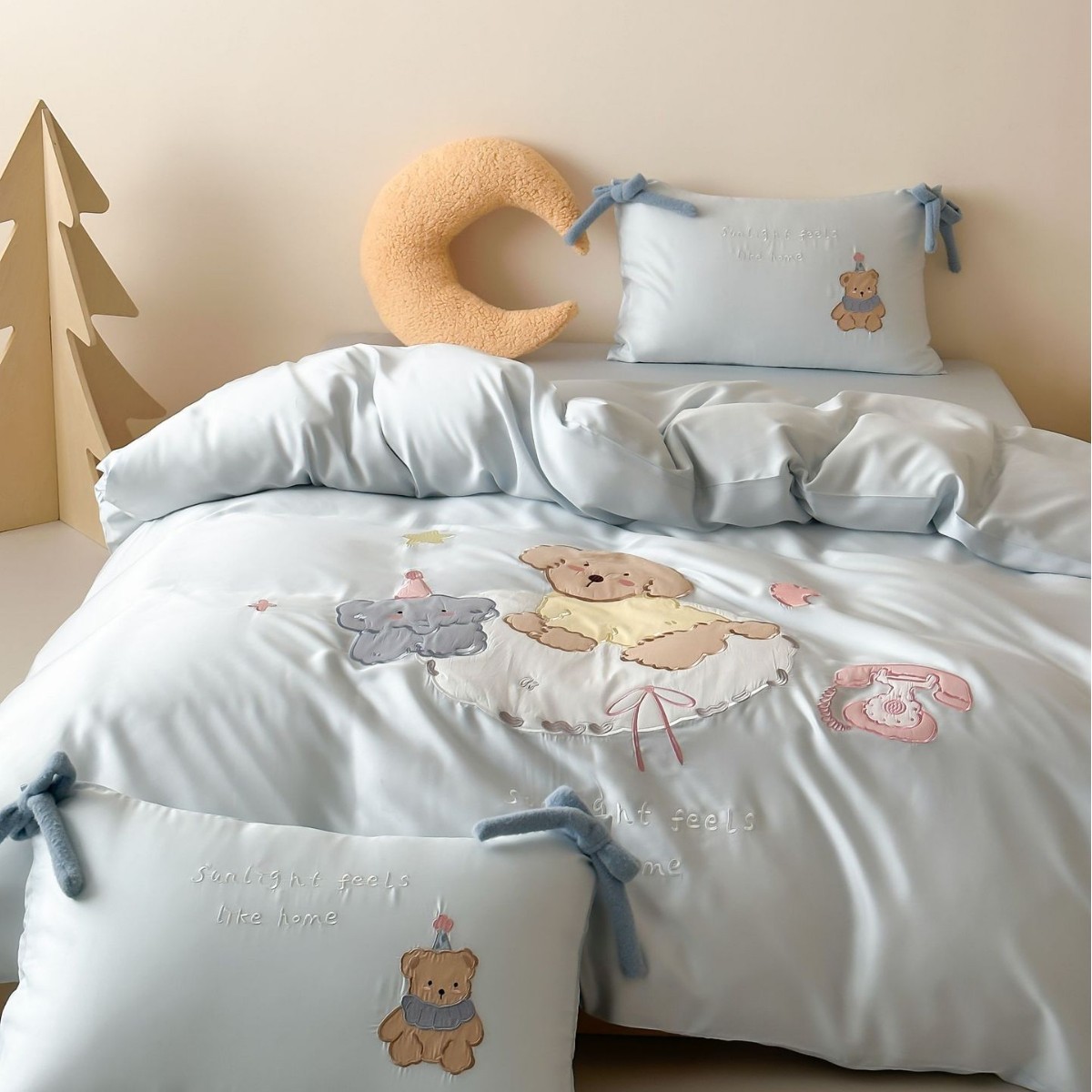 ins 漫画子犬刺繍 60 s レンチングテンセル夏クールキルト 4 ピースアイスシルクキルトカバーヌード睡眠シートエアコンキルト