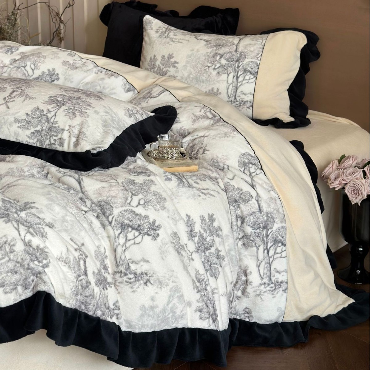 レトロフランス秋冬新品磨毛角シーツ布団カバー民宿風寝具四点セット