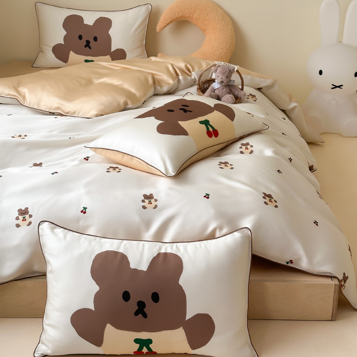 漫画クマプリント 60 年代レンチングテンセル 3 または 4 点セットアイスシルククール子供用キルトカバー裸寝寝具