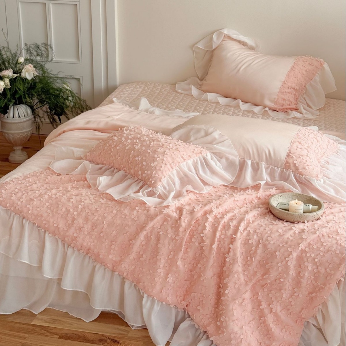 フレンチフレッシュテンセルサマークールキルト4点セット 立体花柄サマークールエアコンキルトシーツ ベッドカバー ガーリーハート