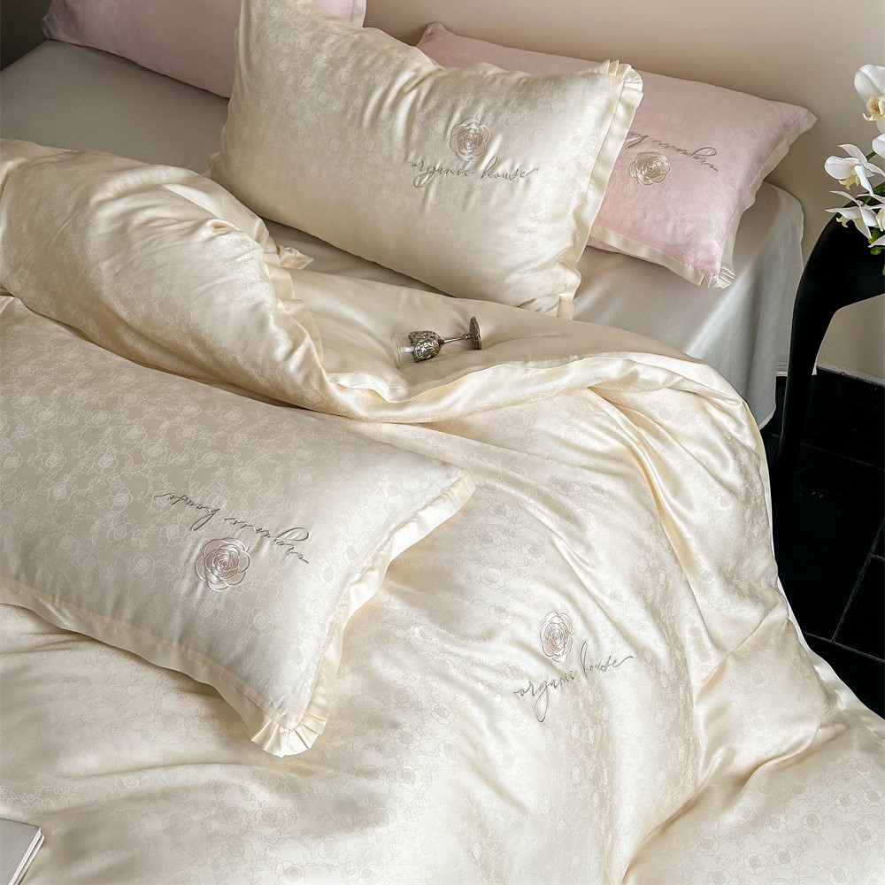 ロマンチックなフレンチプリンセススタイルジャカードオーストリアレンチングテンセル4点セットレースフリルレース薄型エアコンキルト