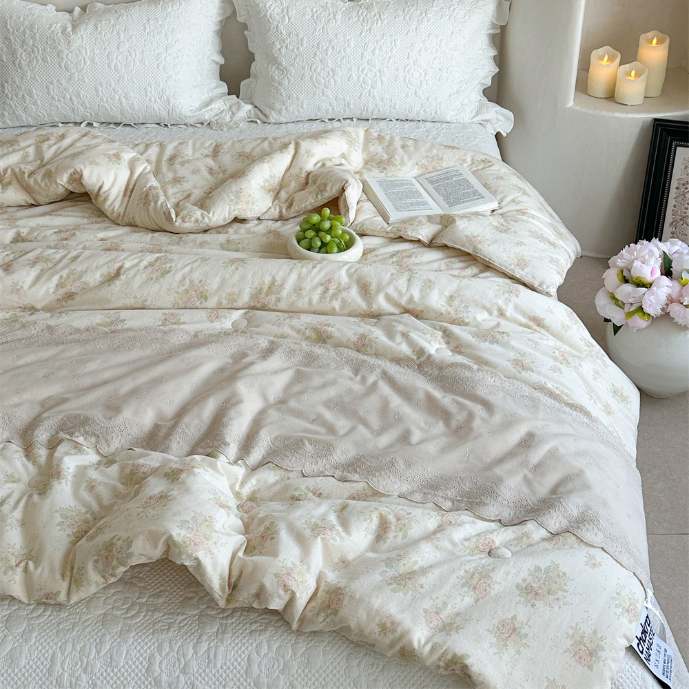 フレンチレトロコットン花柄単層ガーゼサマーキルト新疆綿充填ソフトダブル洗えるエアコンキルト