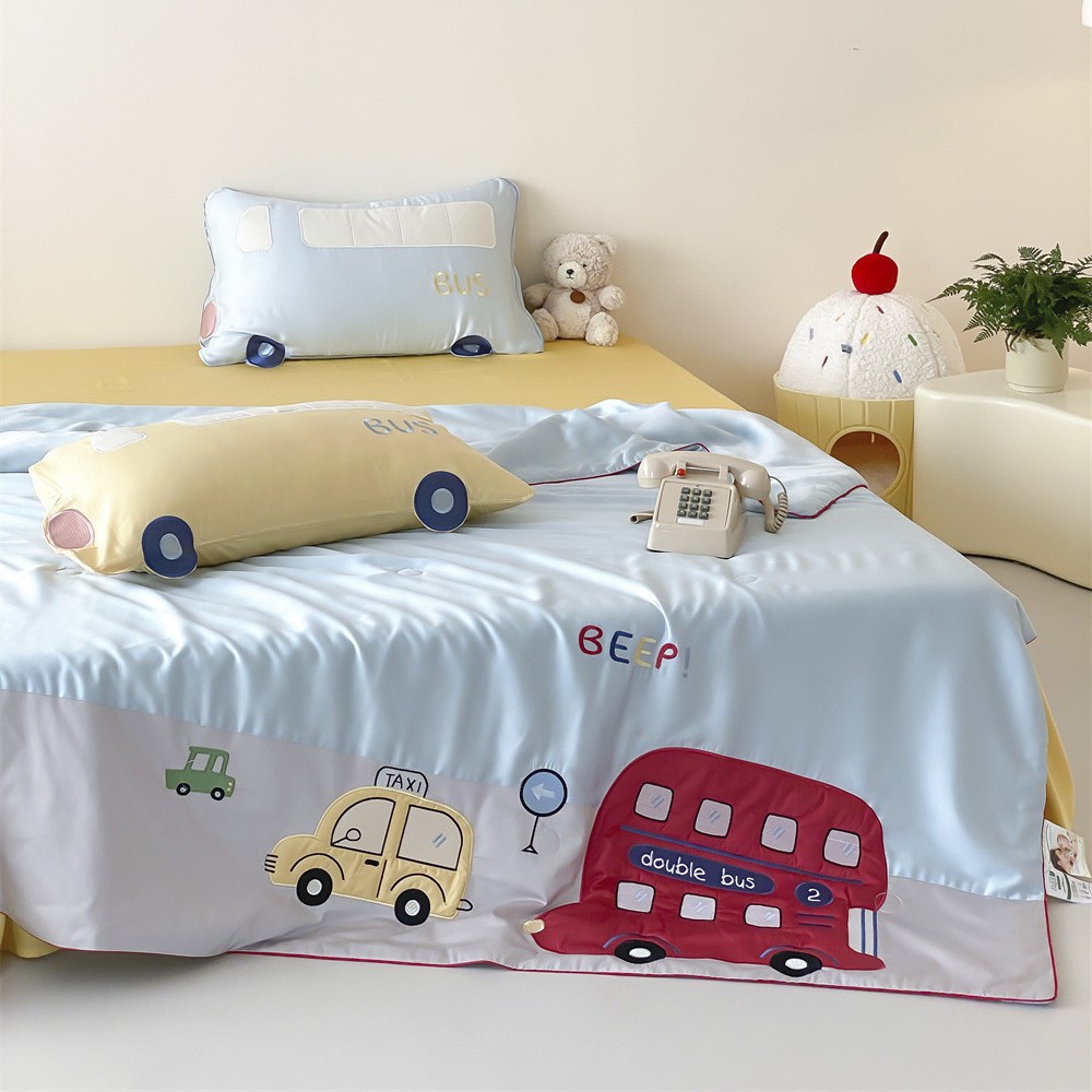 夏用両面50カウントスーパーソフトレンチングテンセル夏クールキルト漫画パッチ刺繍子供用クール洗えるエアコンキルト