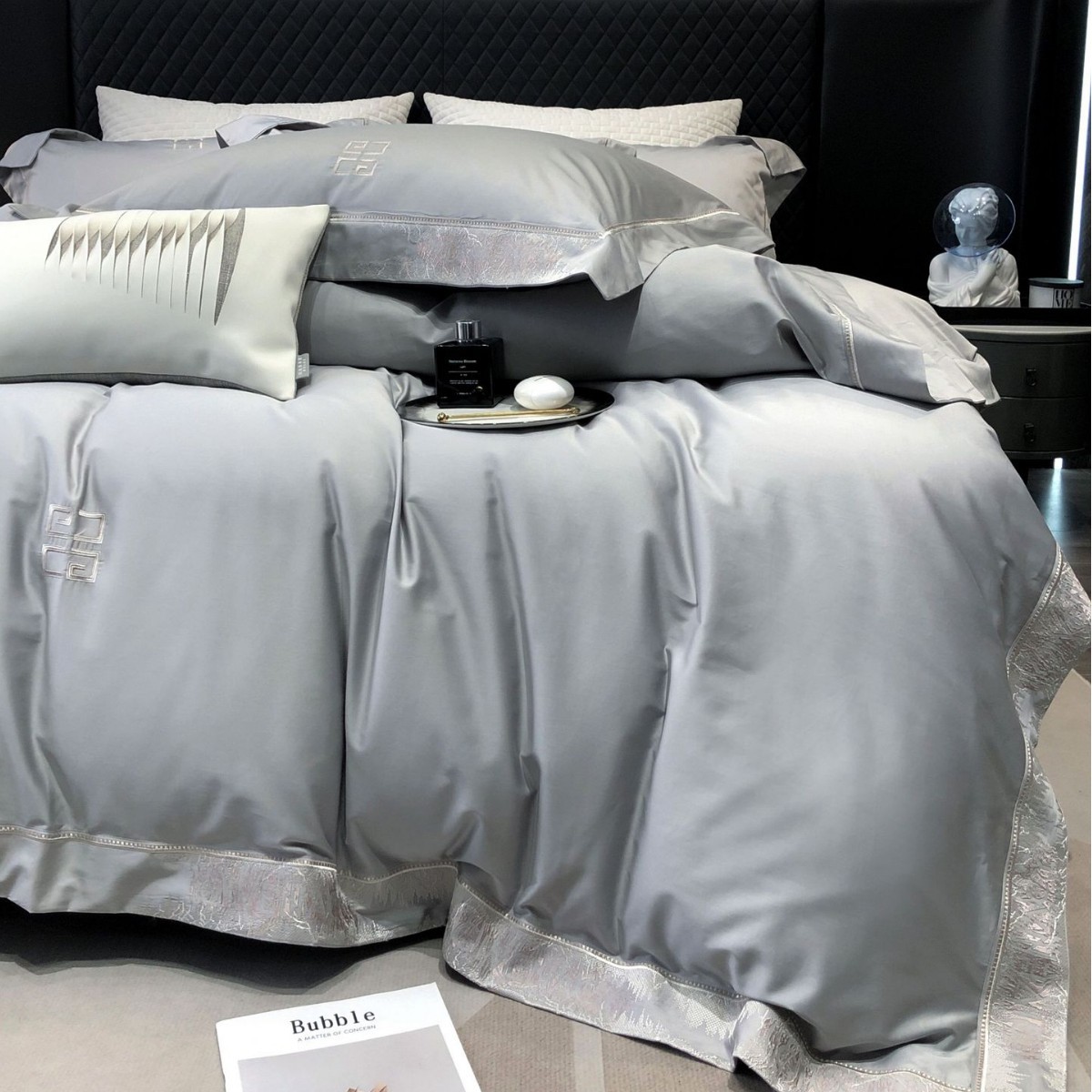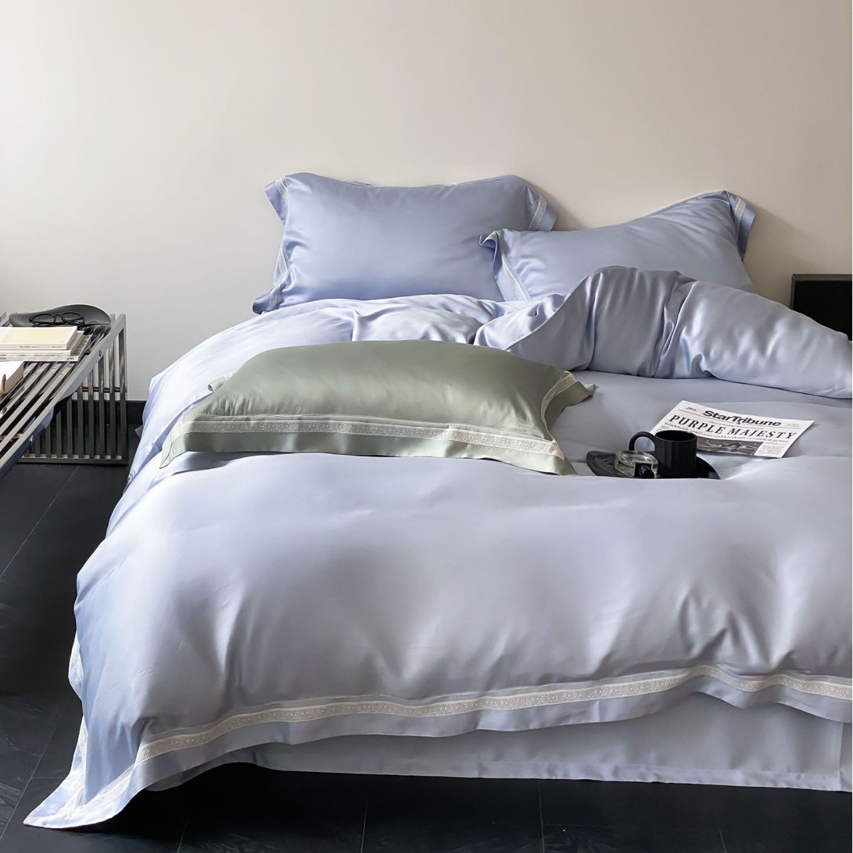 夏のライトラグジュアリー60カウントレンチングテンセル4点セットフレンチレトロレースキルトカバー涼しくシルキー寝具