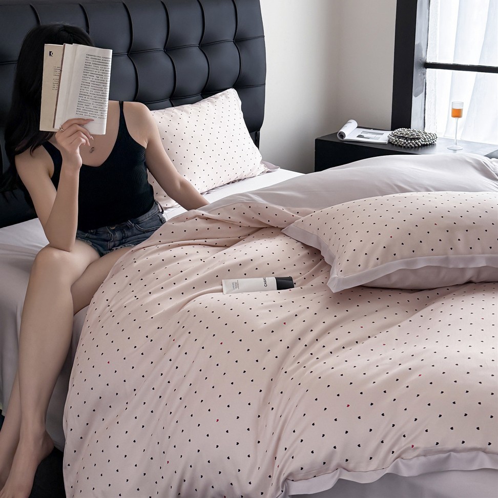 韓国ガールハート水玉プリント60sレンチングテンセル4点セットおしゃれなコーナーキルトカバーシーツ1.8m寝具