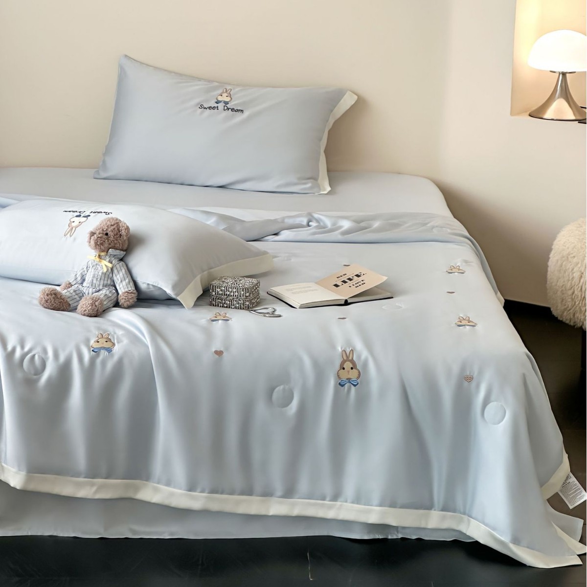 60sオーストリア蘭精天糸夏は4セットのアニメさくらんぼ兎に氷糸冷感エアコンの薄い布団を刺繍された