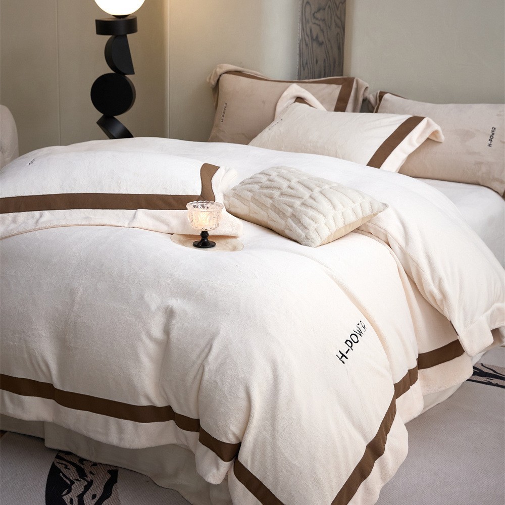 艾能絨毛純色秋冬保温肌牛乳絨毛四点セットファッションアルファベット刺繍厚手布団シーツ