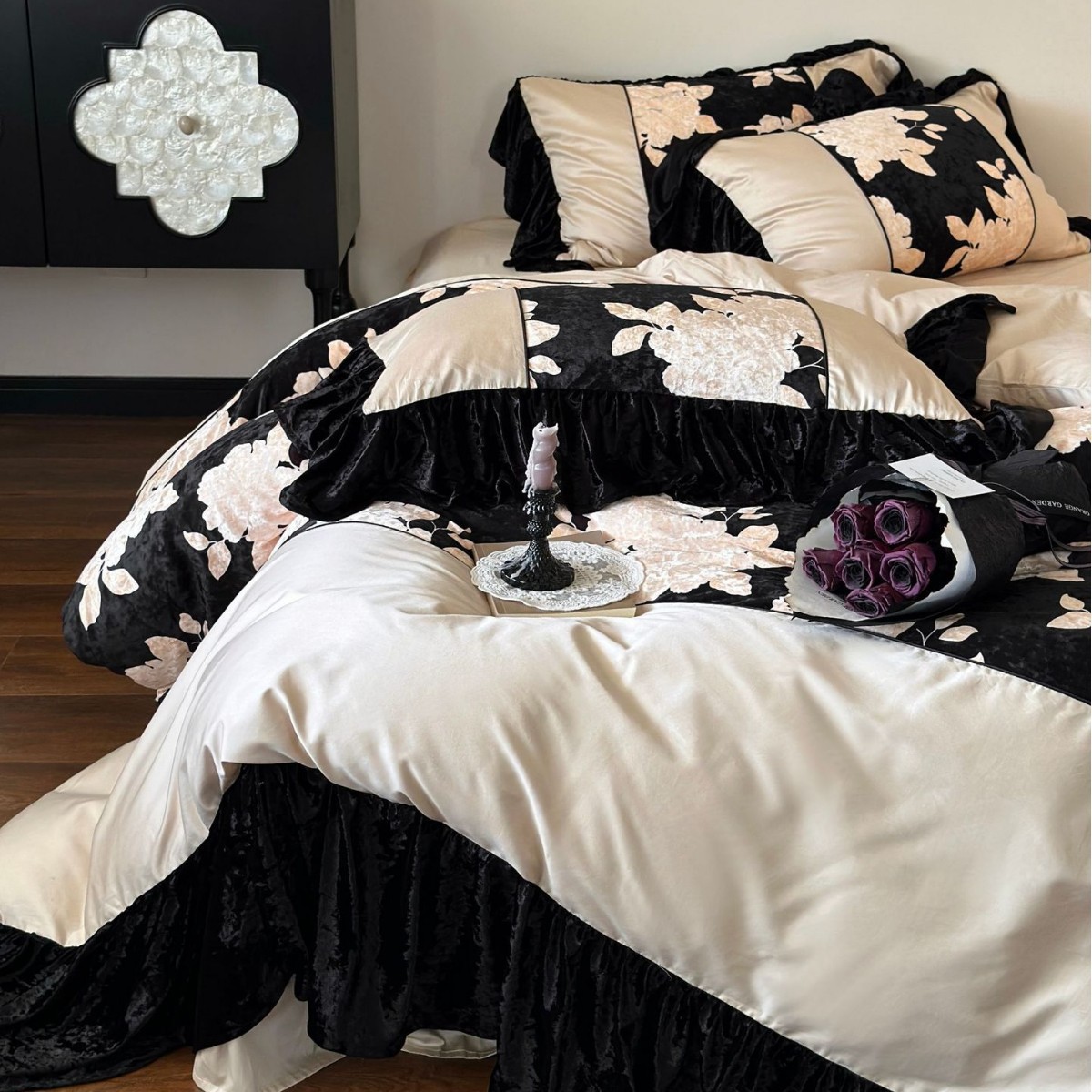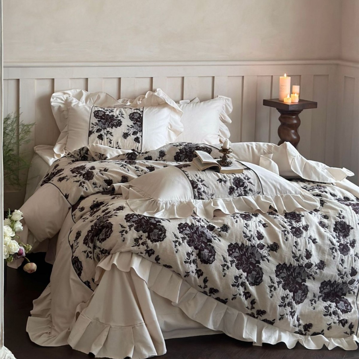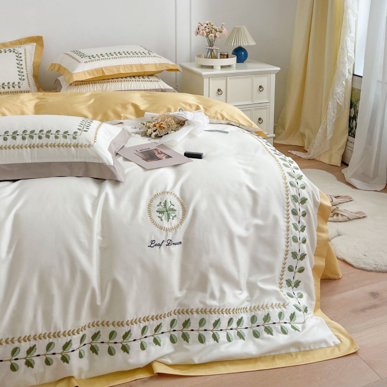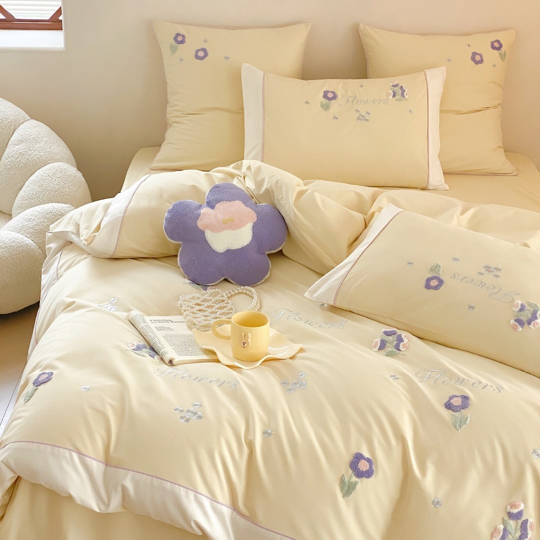 田園風清新100本のベルベット綿功サテン4点セット純綿植物刺繍布団シーツ二人用ベッド用品