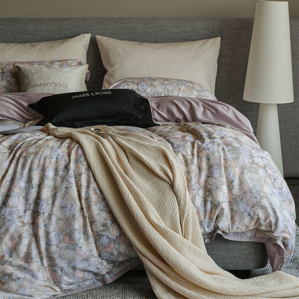 フランスのレトロな水墨のプリントの4つのセットの綿の功のサテンは軽く毛を磨いて保温します。
