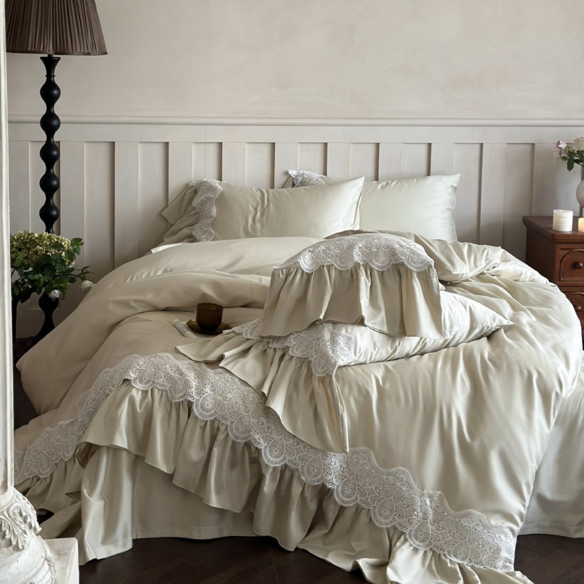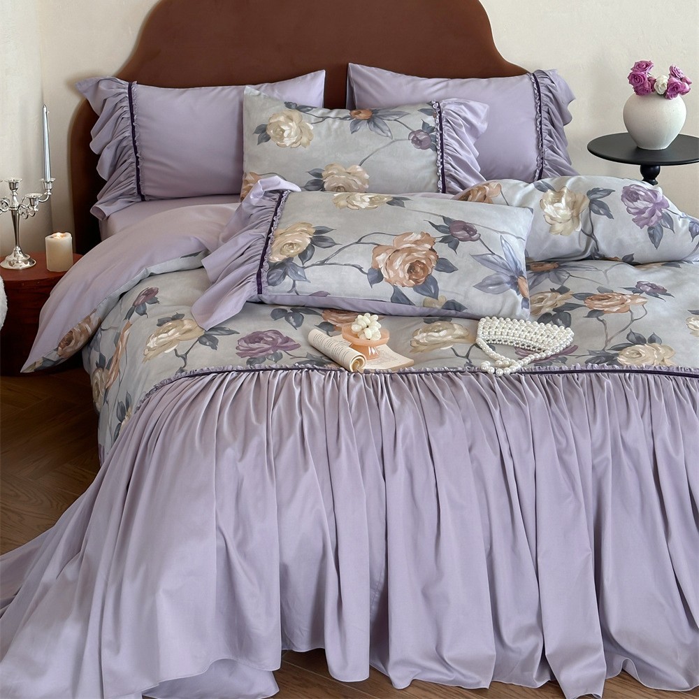 フランスのシルク綿の毛磨き四点セットの韓国式レースの少女の心の柔らかい布団シーツの寝具
