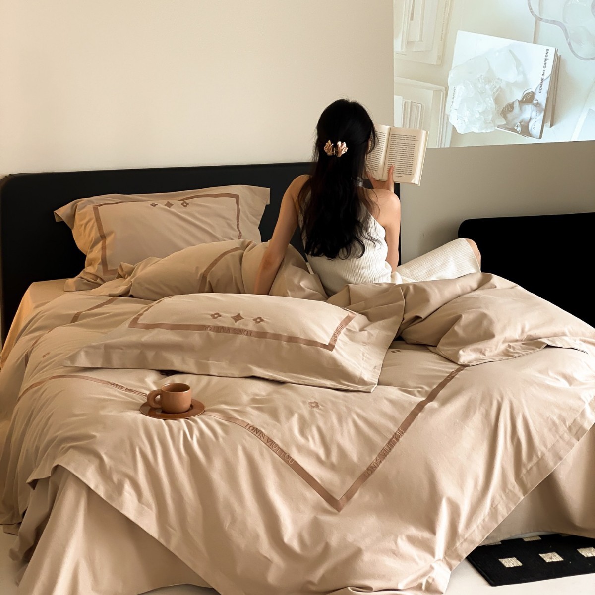 秋冬のシンプルな厚手100s綿研磨4点セット刺繍保温純綿布団カバー1.8m寝具