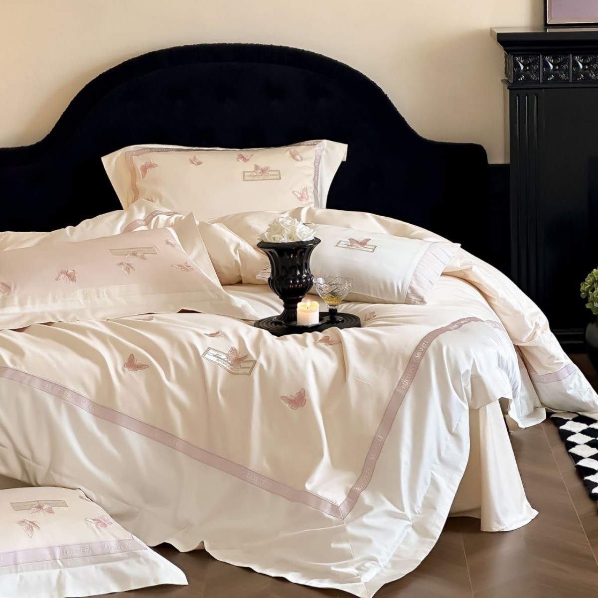 美しい蝶の刺繍100本の長い綿の4つのセットの柔らかい少女の心のシーツは裸で寝ます。