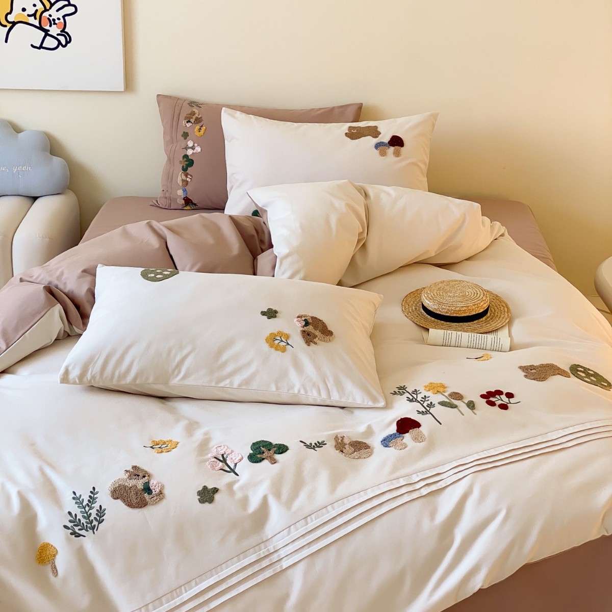 漫画風フレッシュタオル刺繍起毛綿100%4点セット秋冬用あったか掛け布団カバー純綿1.8m寝具