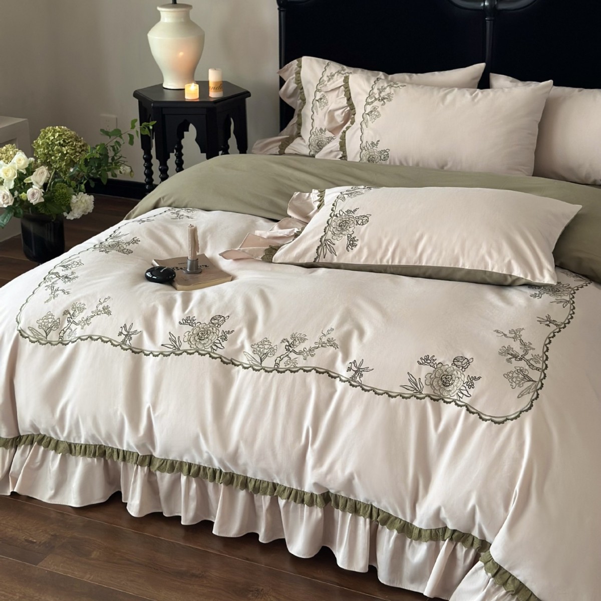 秋冬保温田園風100本綿研ぎ毛4点セット刺繍韓国式レース布団シーツベッド用品
