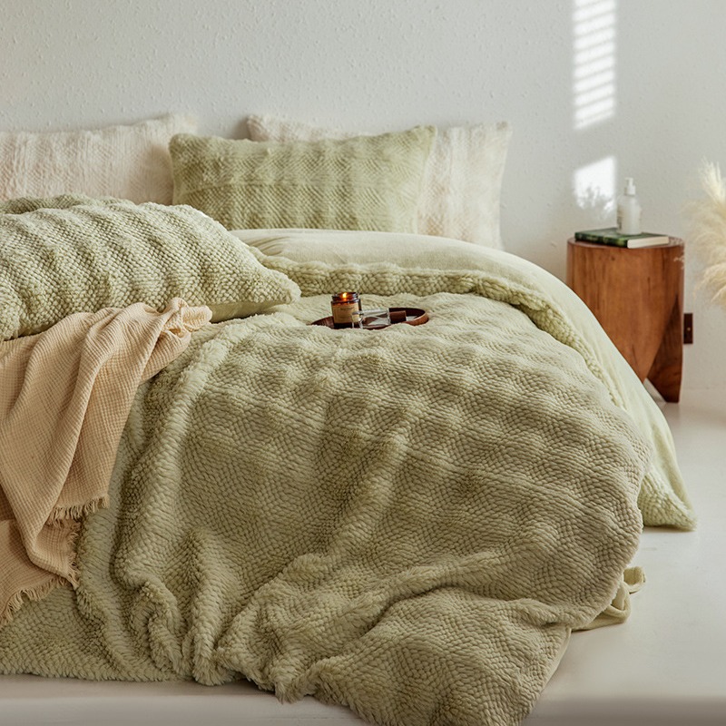 クラスAは500gの高坪量を厚くして、トカのウサギのベルベットのジャカードの4セットの保温シンプルな牛乳のベルベットの布団のベッド用品を厚くした