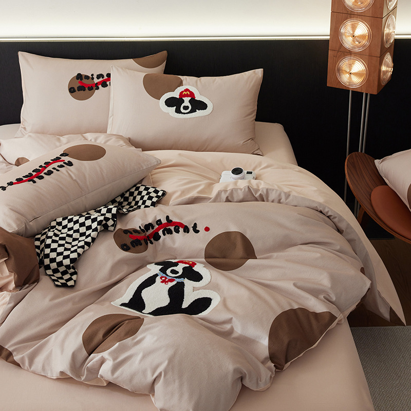 A類秋冬超柔らかい厚手の毛磨き4点セットのアニメ麦門子犬の布刺繍保温布団の寝具