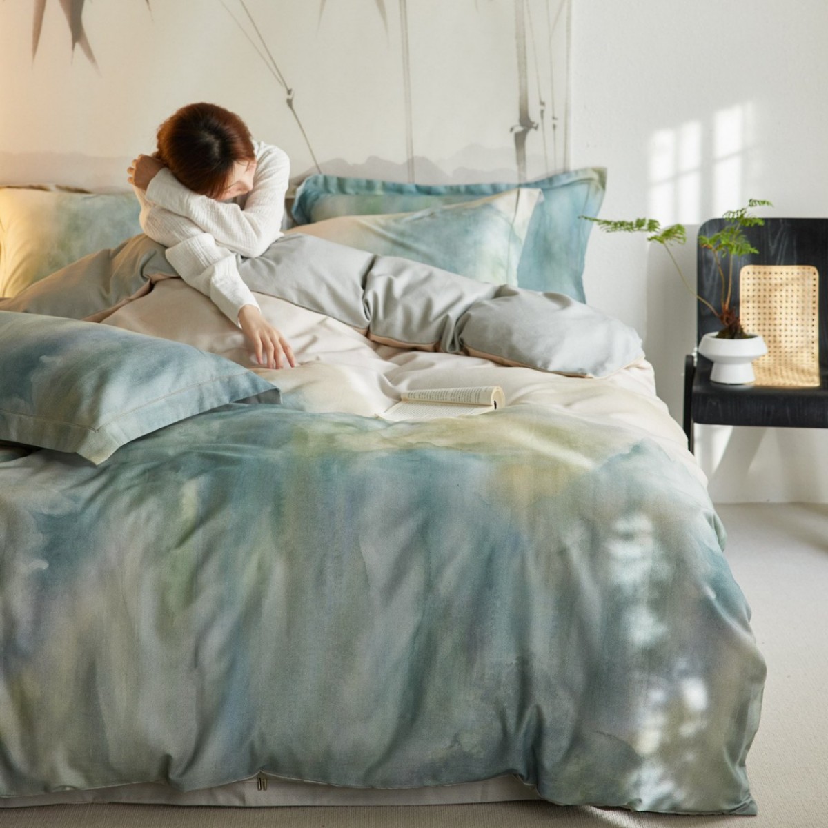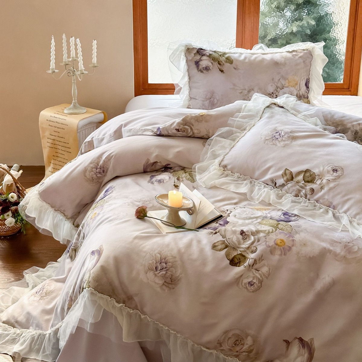 唯美ins風100本棉磨毛デジタルプリント4点セット二重レースプリンセス風プリントベッド品
