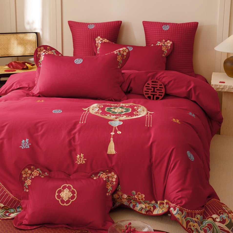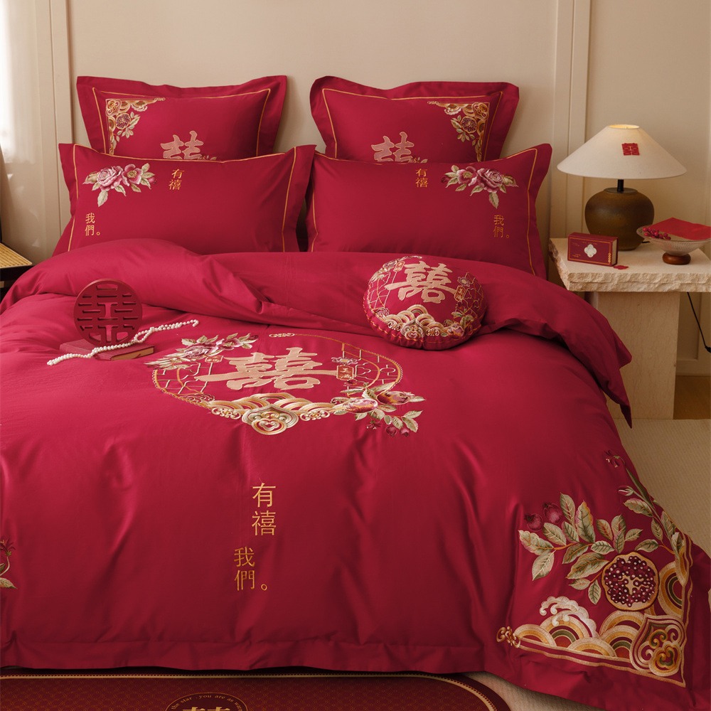 高級大気中国式結婚祝い50本の双株オーストラリア綿4点セットの歓迎刺繍綿セットの結婚部屋のベッド用品
