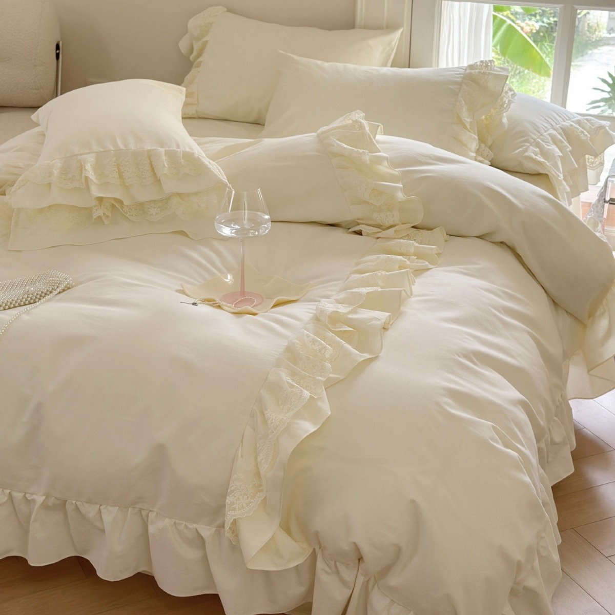 ミルク芙芙100本棉磨毛姫風四点セット二重ロマンチックレースシーツ1.8mベッド用品