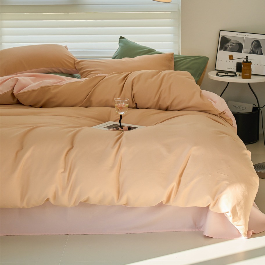 秋冬シンプル火山小磨毛純色純綿四点セットソフト肌保温布団カバー1.8m寝具
