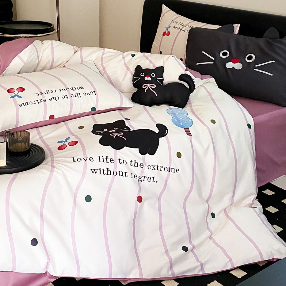 かわいい子猫の布刺繍100s新疆長絨綿4点セット子供の波点プリント綿シーツ寝室