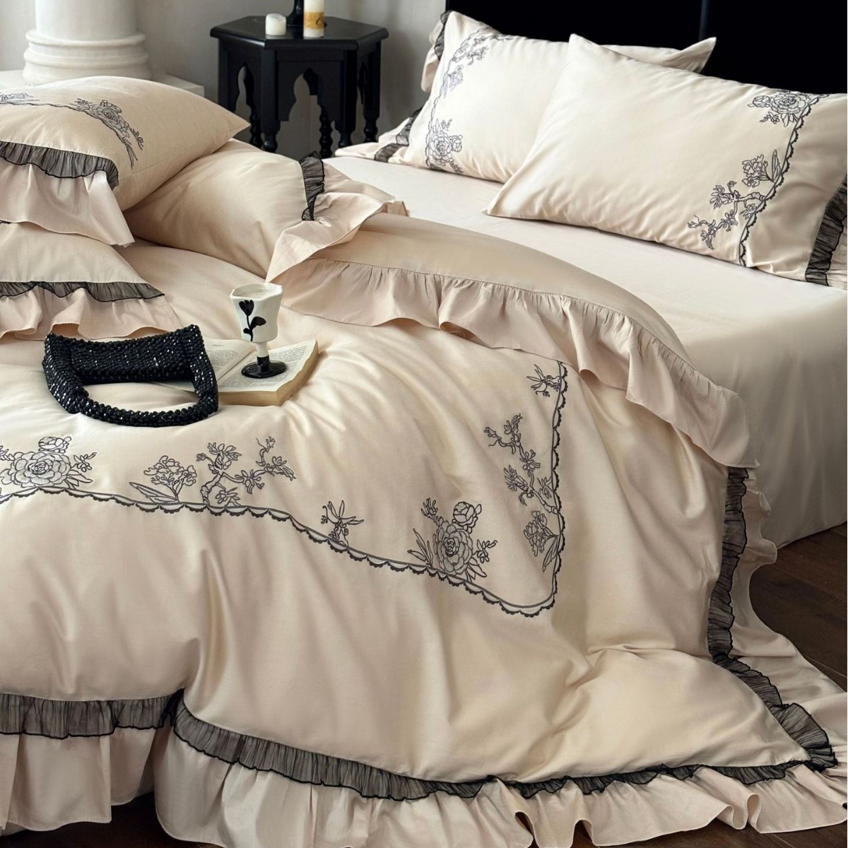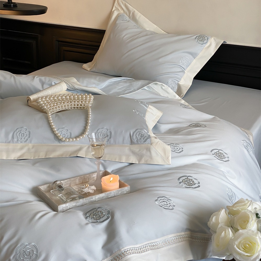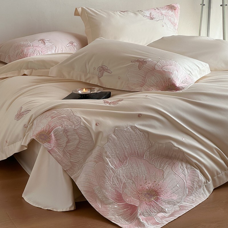 軽豪華山茶花刺繍100本オーストラリア綿4点セットバラ花卉少女心シーツ純綿布団カバーベッド用品