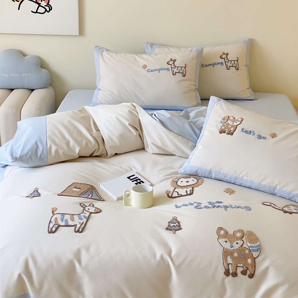 アニメ元気動物刺繍児童100本磨毛4点セット綿シーツセットベッド用品寮3点
