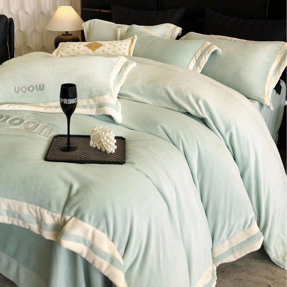 クラスAシンプル冬230g全艶消し牛乳パイル4点セット刺繍保温厚いサンゴパイル布団シーツ