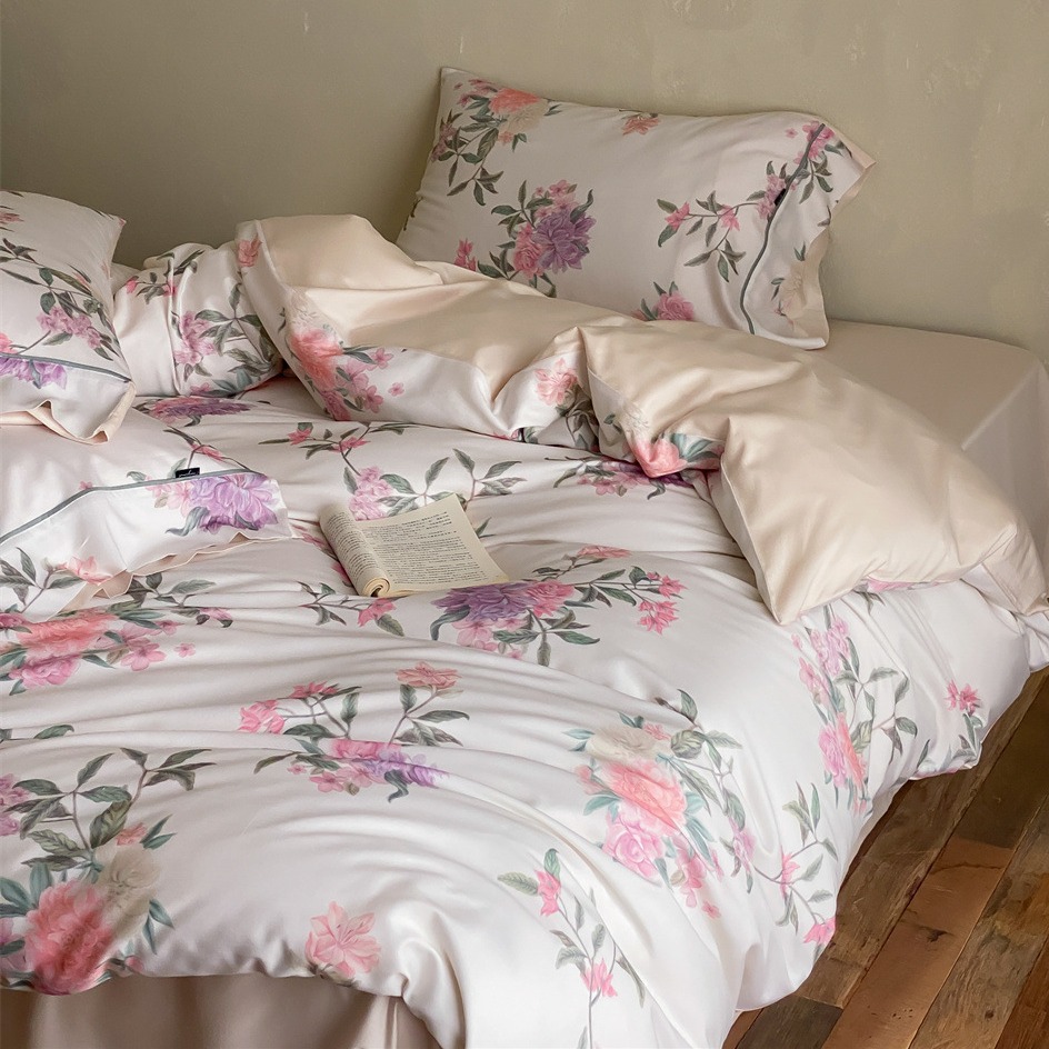 清新な小さな砕花60本のシルク綿の毛磨きプリント4点セットの田園風布団シーツ寝室ベッド用品