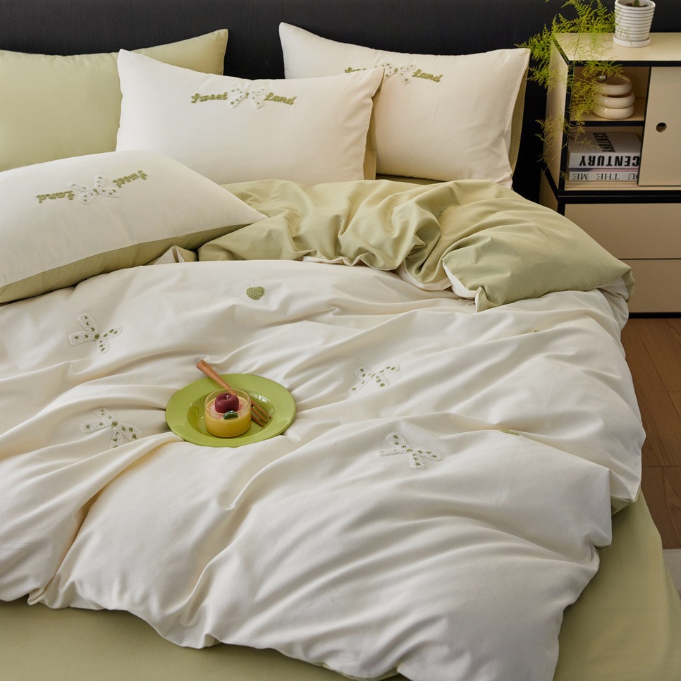 粉黛の恋甘い少女心蝶刺繍100本のオーストラリア綿4点セットの純綿布団シーツベッド用品