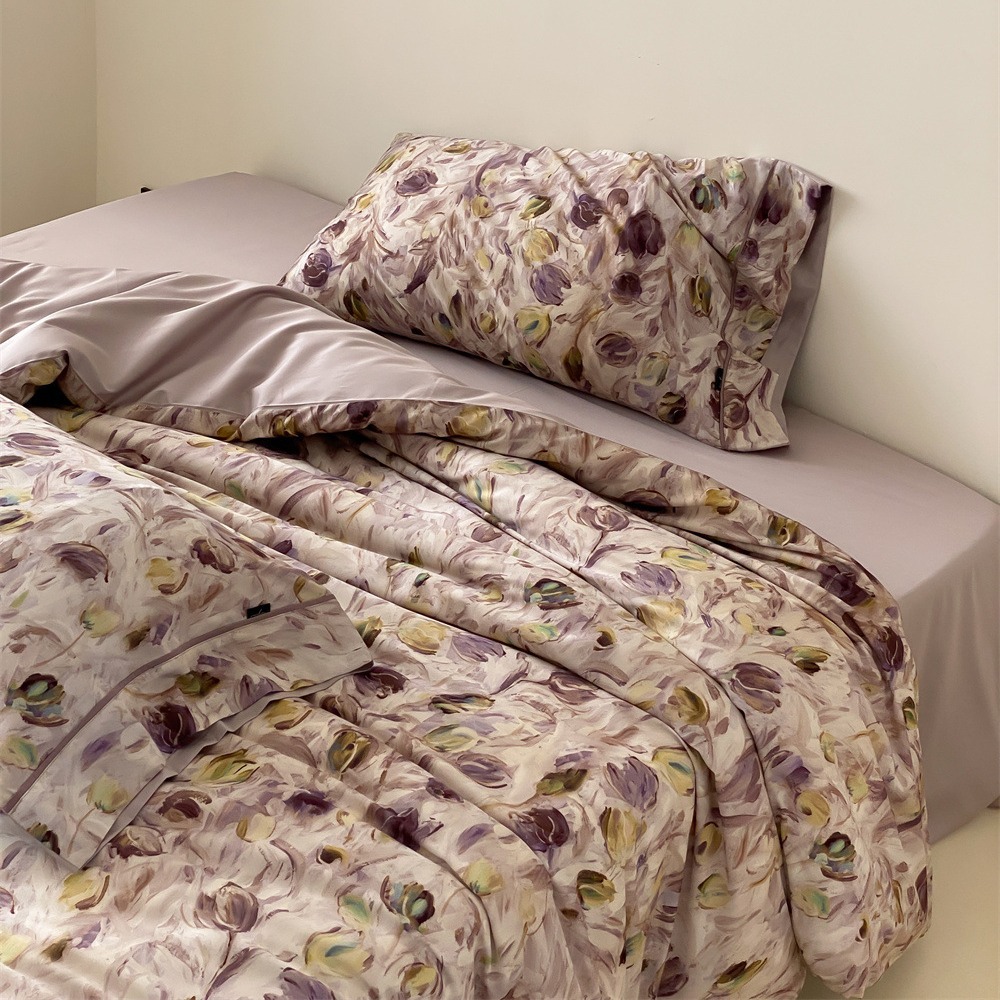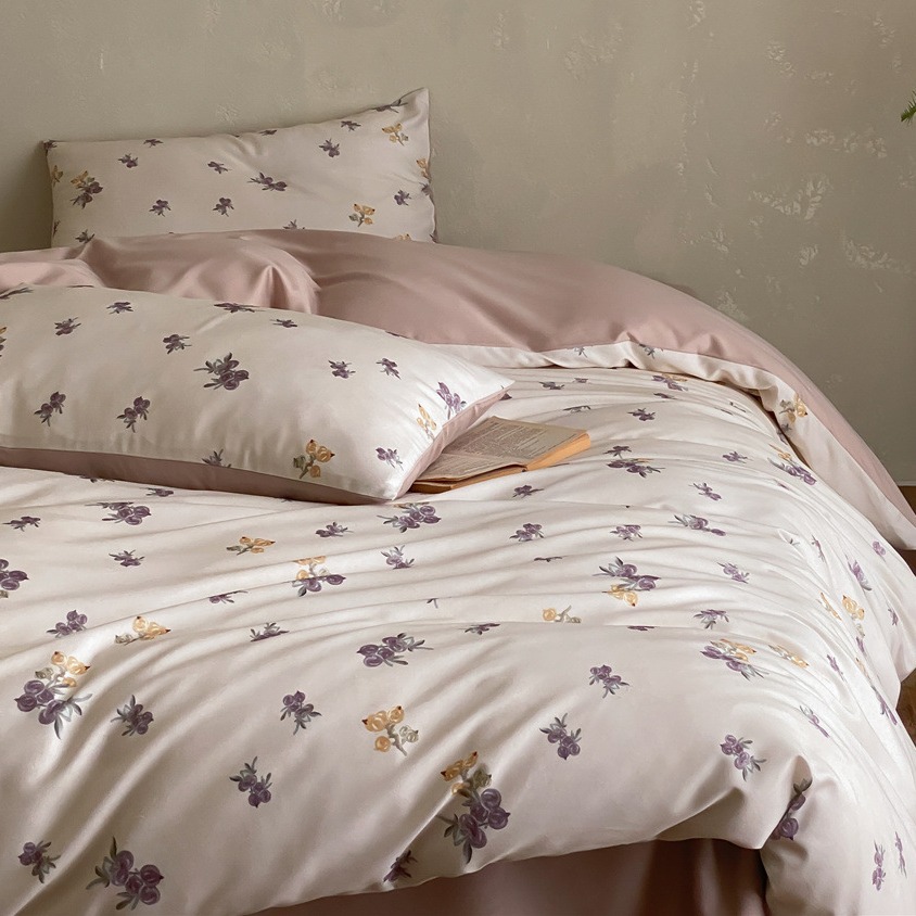 清新な小さな砕花60本のシルク綿の毛磨きプリント4点セットの田園風布団シーツ寝室ベッド用品