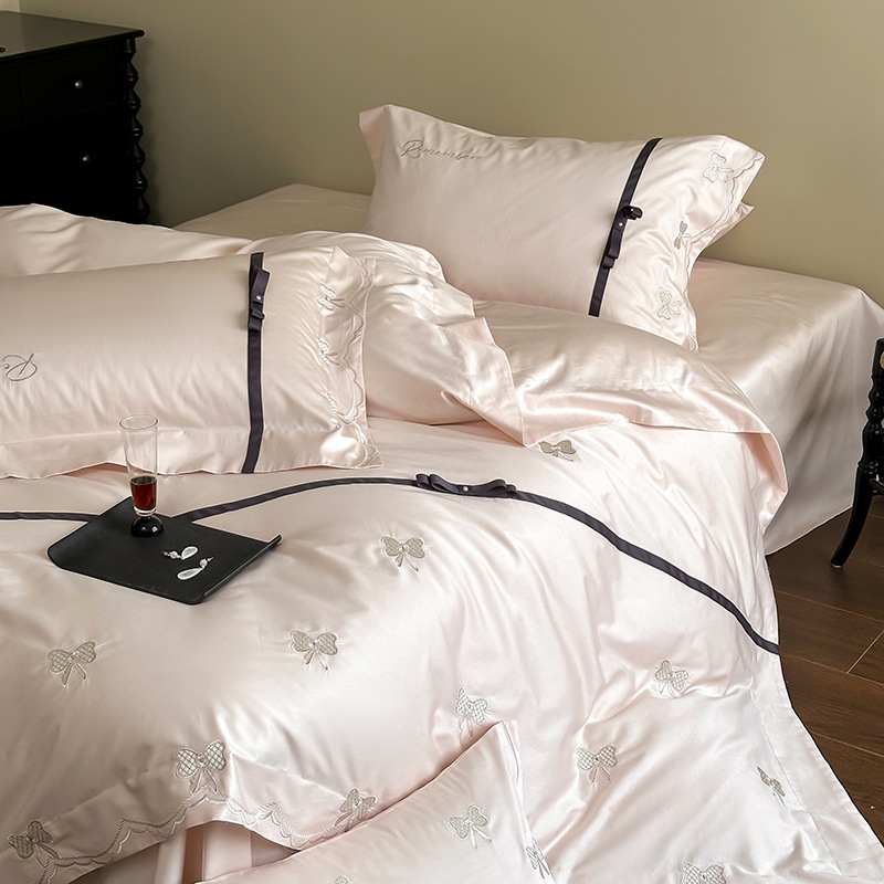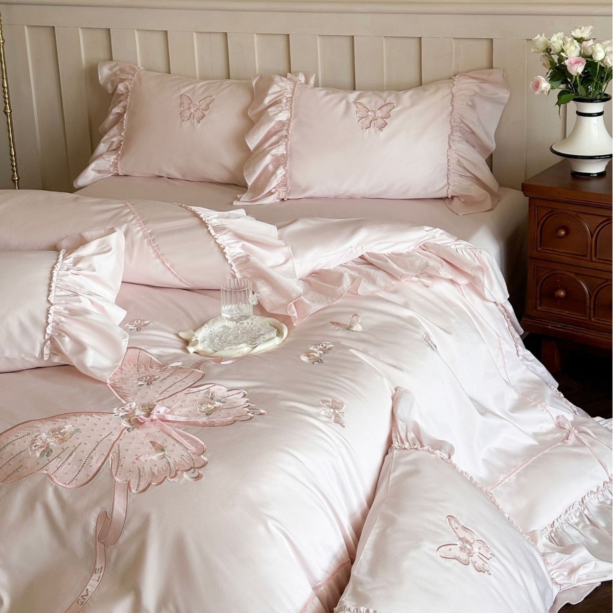 粉黛の恋甘い少女心蝶刺繍100本のオーストラリア綿4点セットの純綿布団シーツベッド用品