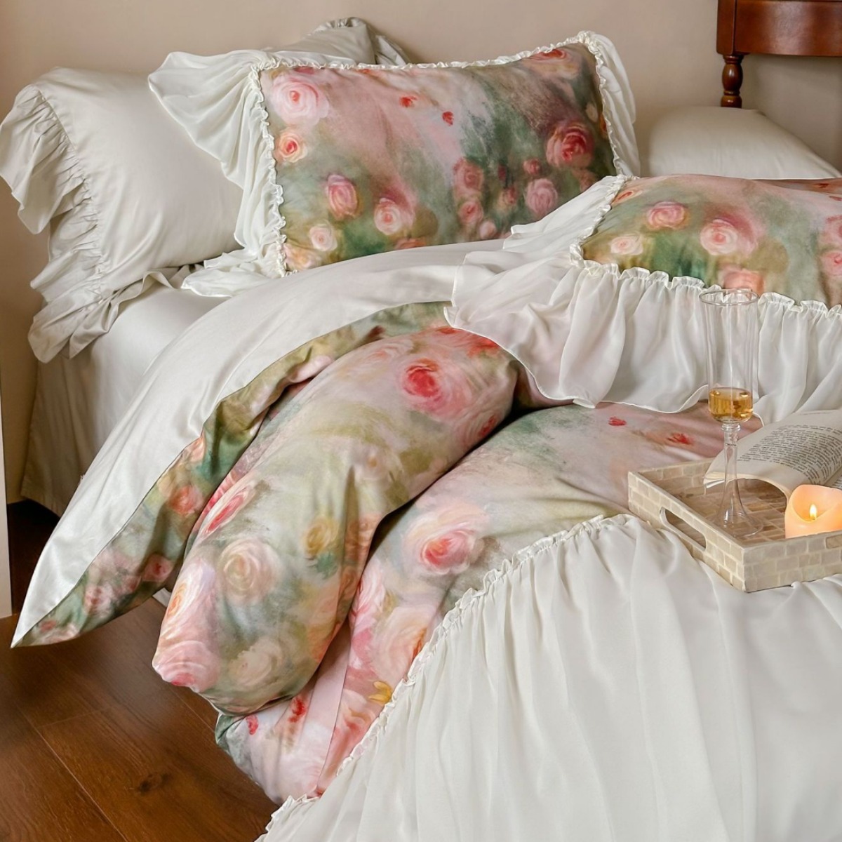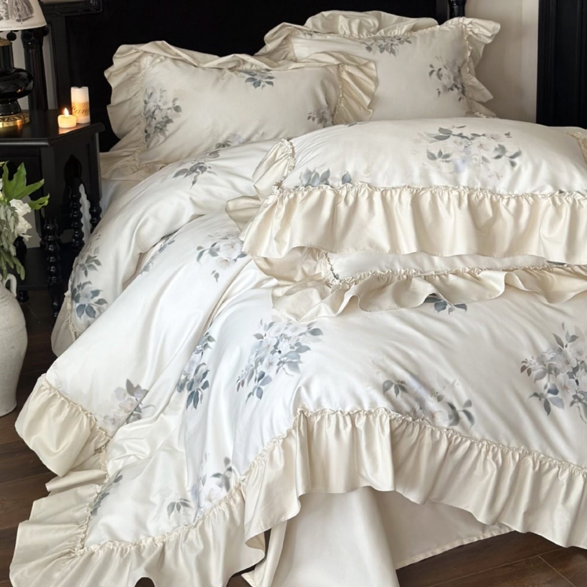 秋冬のフレンチコーデュロイ120s綿研磨プリント四点セットのしわレースのロマンチックな少女感ベッド用品