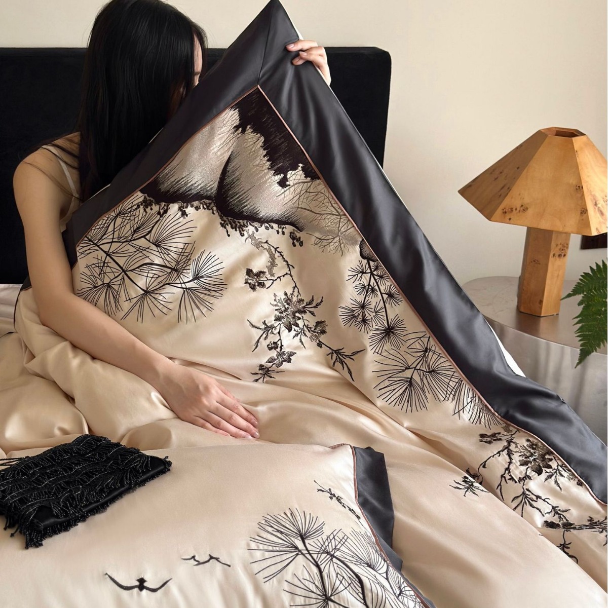 中国風古韻100s長パイル綿刺繍花卉4点セット軽贅沢高級四季金1.8mベッド用品