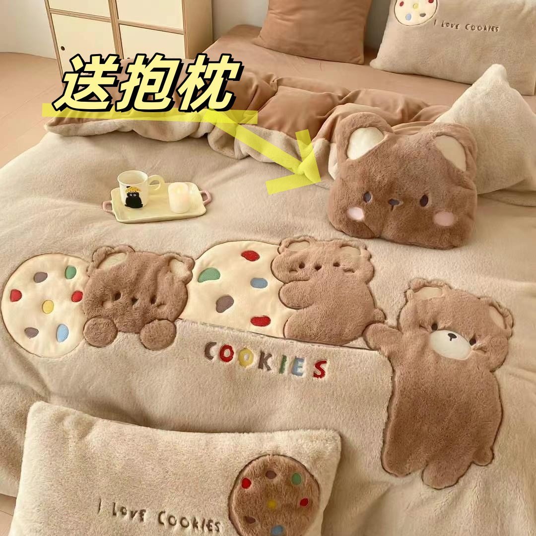 アニメ熊かわいいデジタルプリント四季型50s長パイル綿四点セット刺繍綿布団カバー1.8ベッド用品