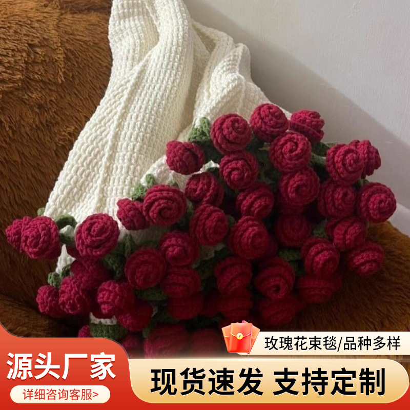 ローズブーケブランケット、手編み完成ブランケット、中国のバレンタインデー、バレンタインデーのクリエイティブなギフト、ブーケブランケット