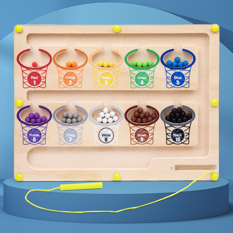 クロスボーダー児童木製早教磁気運珠筆計数演算色分類バスケットボールの位置知育類玩具