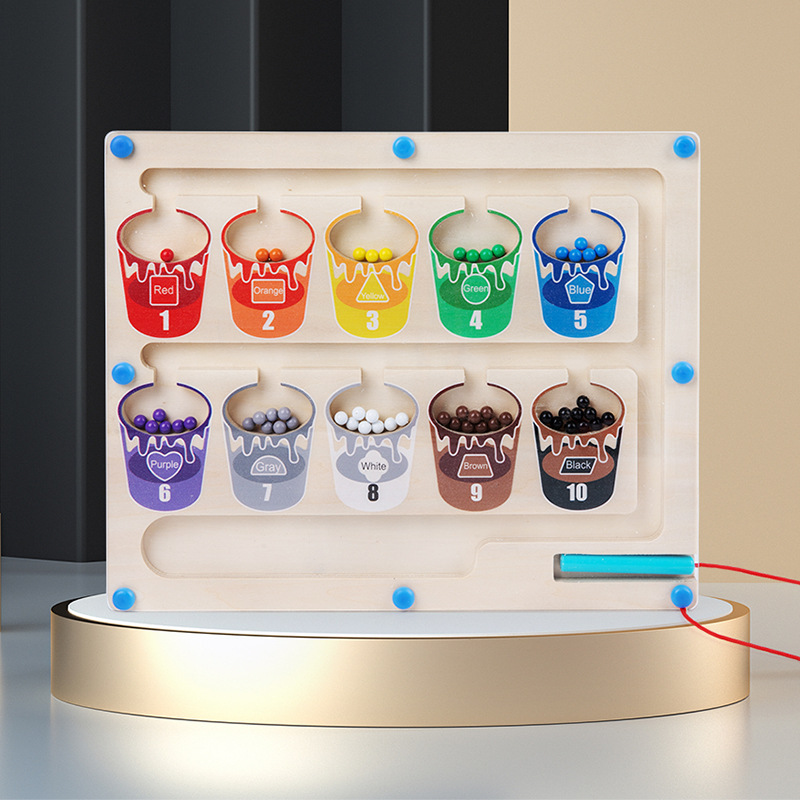 クロスボーダー木製児童早教磁気コップ走珠色分類板鍛錬手眼協調知育玩具