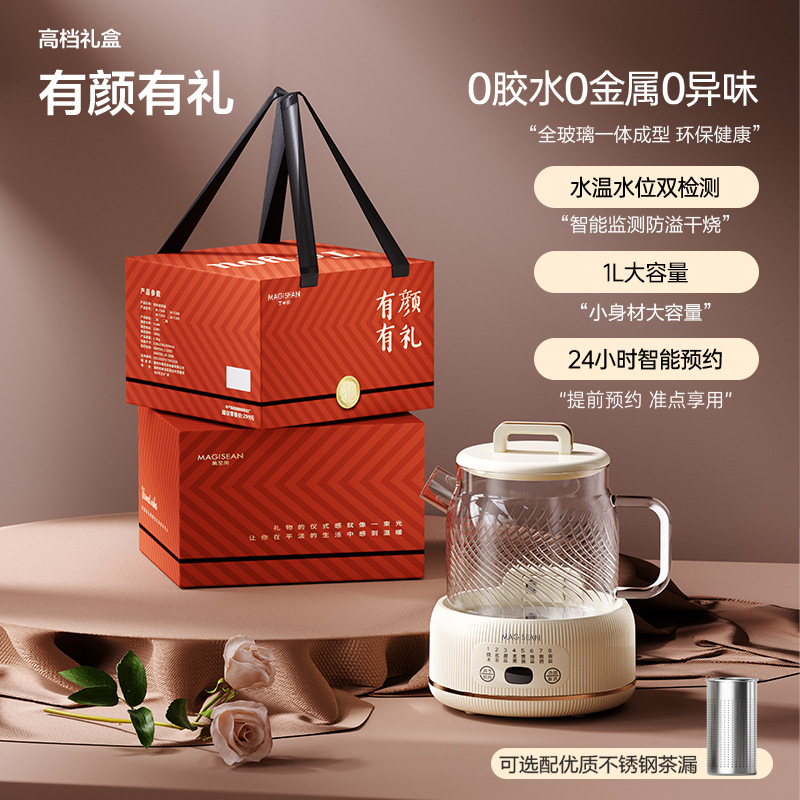 ガラス製のボディにスマートな調理機能を搭載した一体型湯沸かし器、中秋節の贈り物、一人用小型恒温健康湯沸かし器
